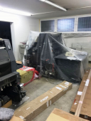 Doch wenn die Maschinen nicht - wie uns angeboten - sauber, frei und ebenerdig, sondern abgedeckt mit Planen, zwischen emsig hantierenden, unter Termindruck arbeitenden Handwerkern stehen (die absolut kein Verständnis für unsere Arbeit aufbringen konnten) und dann auch noch durch einen viel zu engen, gerade frisch renovierten Kelleraufgang transportiert werden müssen, (dessen Wände natürlich unter keinen Umständen beschädigt werden dürfen), dann geht es auch bei uns an die Grenzen des Möglichen.