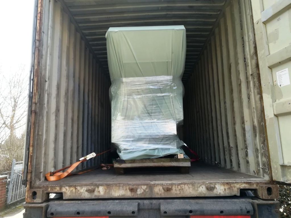Die von uns beauftragte Transportfirma Sachsenlandspedition Dresden, Niederlassung Duisburg, konnte die Maschine nach einer Seereise von 42 Tagen ordnungsgemäß im Hafen von Hong Kong an den chinesischen Kollegen übergeben.