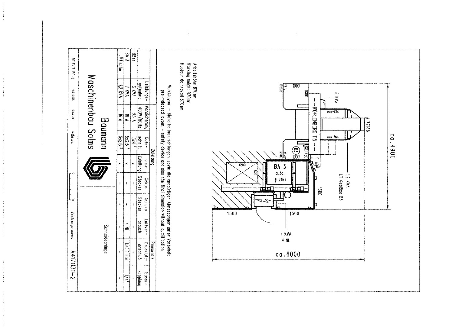| Power supply: | This machine is connected to 400 V, 50 Hz. |